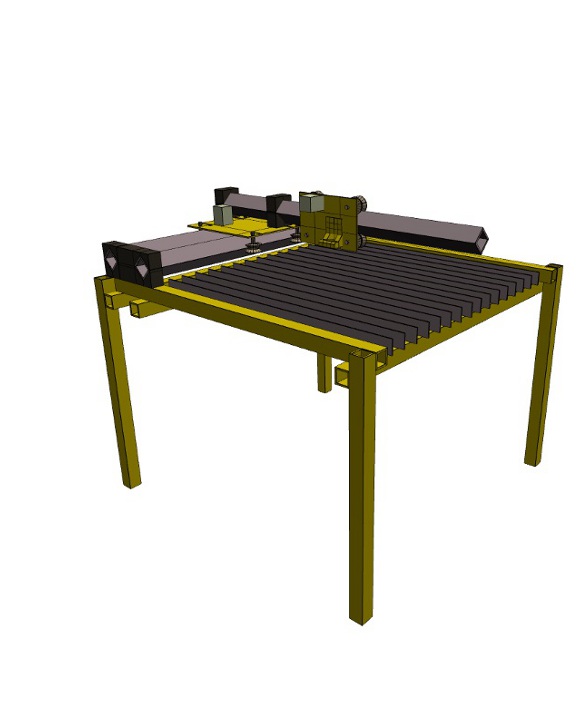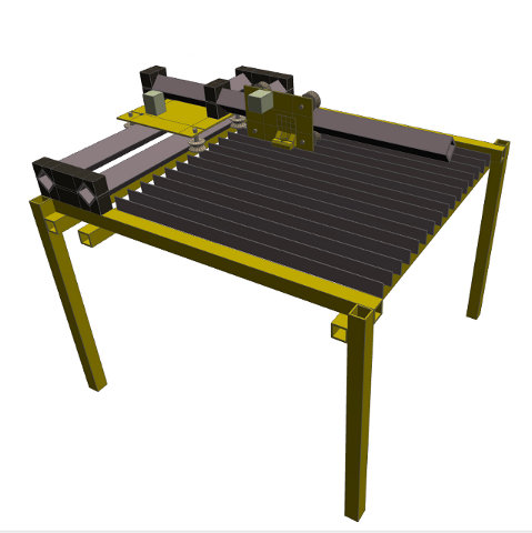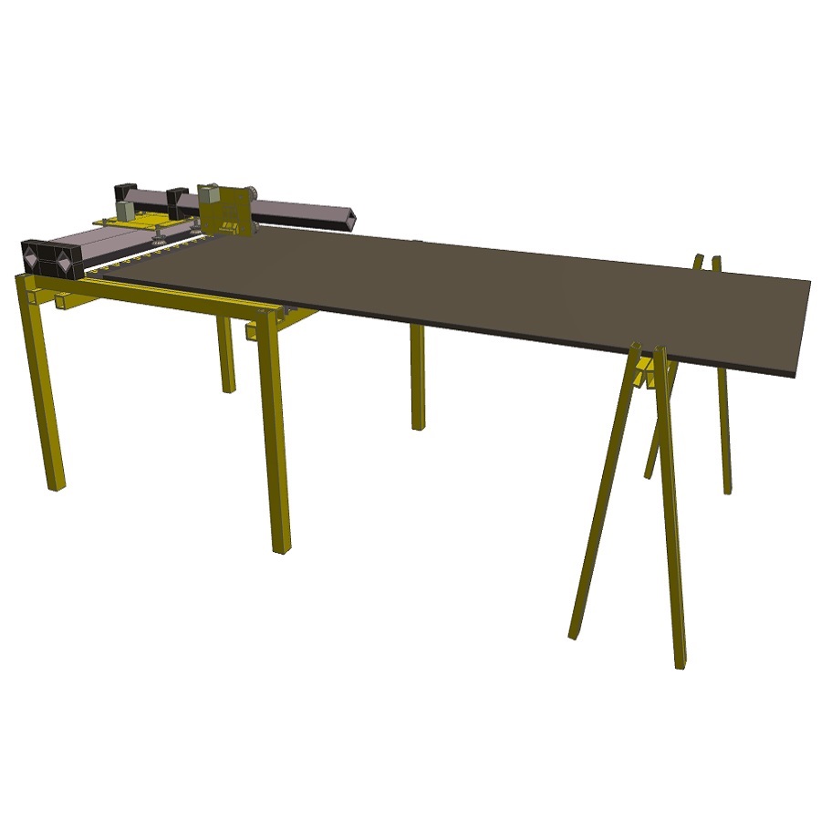 Konstrukcja oparta o jeden wózek osi Y pozwala na ułożenie większych arkuszy blachy niż pole robocze. Wystarczy przygotować podpory obok maszyny i można ciąć całe arkusze. Przesuwając arkusz można również wycinać elementy większe niż pole robocze.